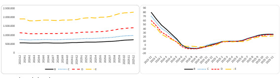 Şekil 2: Araç sınıfına nazaran ortalama araba fiyatı (TL) (Sol panel), araç sınıfına nazaran ortalama araba fiyatının yıllık değişimi (%) (Sağ panel)